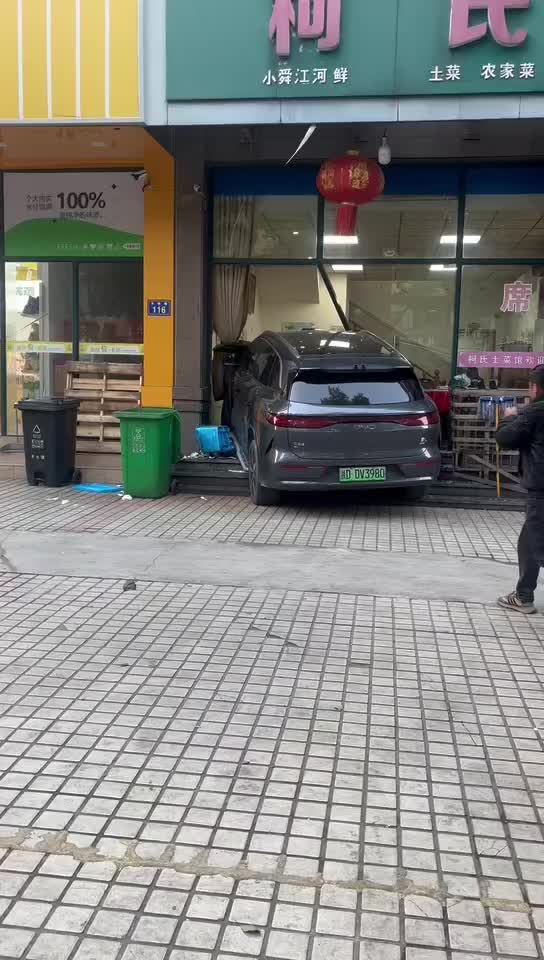 汽车开进饭店里