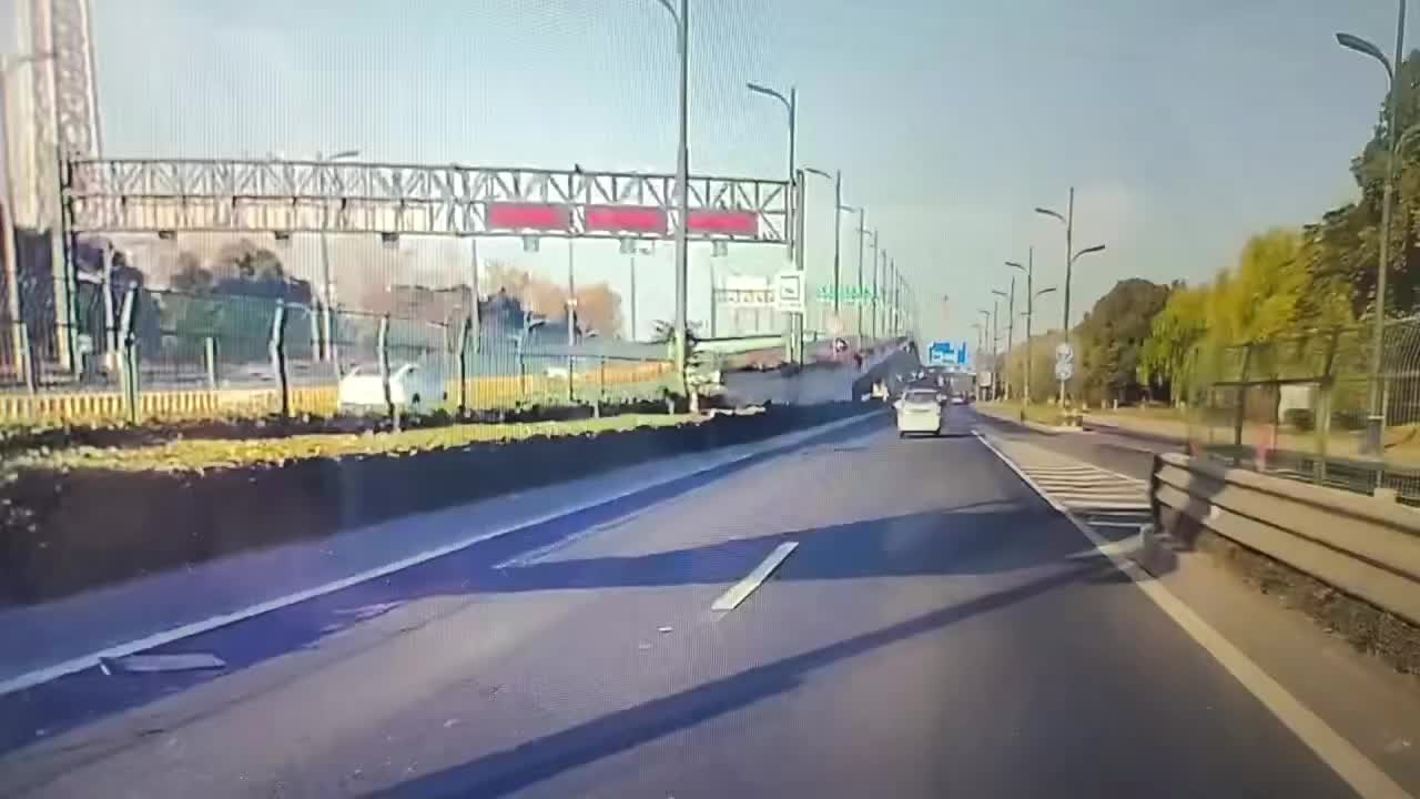 柯桥银兴路上,一辆理想戳到了,马路护栏上了,危险啊