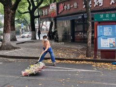 望花路“扫地僧”火了!赤膊大爷扫叶自带侠气