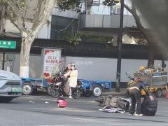 马臻路路口一辆电动汽车和电瓶车相撞事故