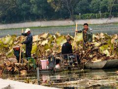 清洁工在清除荷塘
