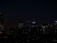 今天偶然发现柯桥宝龙CBD内透灯光夜景还不错