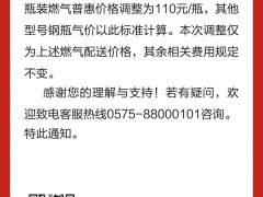 最新!绍兴一地发布瓶装燃气价格调整公告