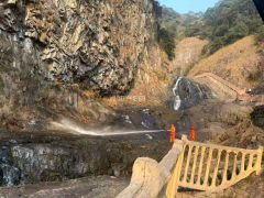 诸暨五泄淡季,搞卫生冲水。