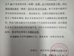 《近期,由于肉价持续下跌,同心楼拟调低售价》删帖说明