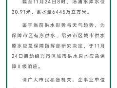 绍兴启动市区城市供水原水应急保障Ⅱ级响应