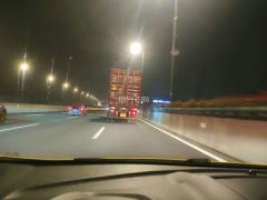傍晚越东快速路老斗门路段上,哎,这个车开的飞快,都窜到人家车上面去了。