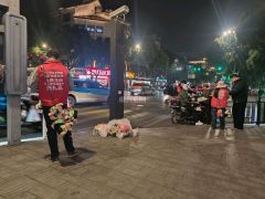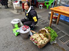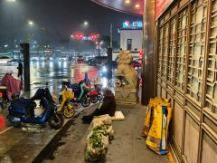 这个点,城市广场旁边震元药店屋檐下有位老太太还坐在地上卖菜