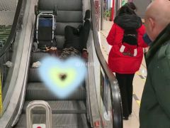 柯桥永辉超市一老太在扶梯处摔倒,无人敢扶!