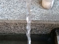 今早有冰冻,中午用水时,发现屋外的水池结冰了。