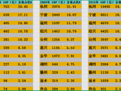浙江各市1985—2025年几个10年跨越的GDP与占比