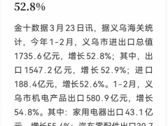 今年1-2月,全市进出口总值 1735.6亿元,增长52.8%