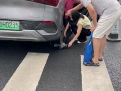 城东渡东桥附近一辆电车下来老人的脚被汽车轮胎压住