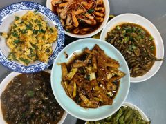 豆板韭菜,粉丝包菜,毛笋烧肉