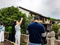 绍兴偶遇江一燕啦在安昌古镇好米一个人,瘦瘦高高的好像在拍摄杂志,