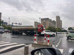 群贤路与镜水路交叉口大货车与汽车相撞事故