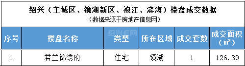 日成交丨11月4日绍兴(越城区)商品房网签7套