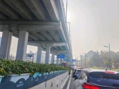 越东快速路与于越快速路这个路口堵的很,当初设计时的败笔,现在马上显示出
