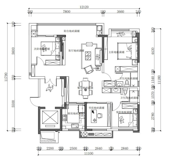 厨房,书房,次卧,外卫都在北面