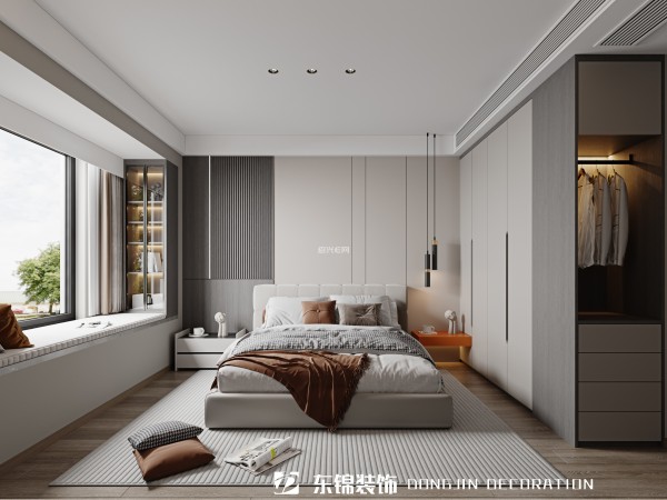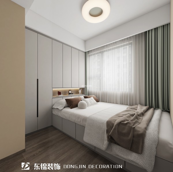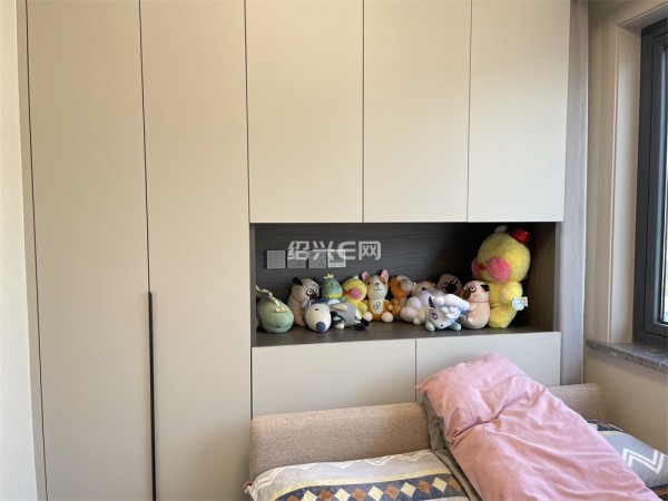 客卧的边柜和墙体很完整的融合在一起