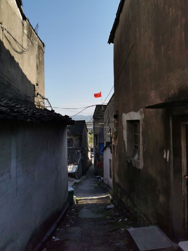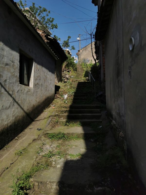 这屋舍,在并不陡的山路坡道二侧,依次而建,屋与屋之间很有特色;这在我刚刚拍了水村埭的七里江、恂南恂北村后,恍惚是看到了电影中的“山城”,缩小版的“山城”。