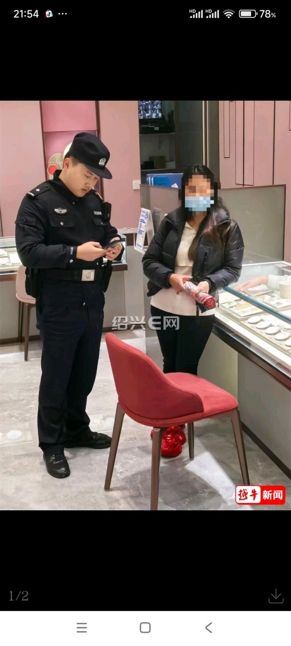 近日,绍兴越城区灵芝派出所接到辖区某金店店员报警称,有位顾客要买8万元黄金,并表示要寄出去“投资”,感到不对劲的店员迅速报了警,民警很快赶到了现场。