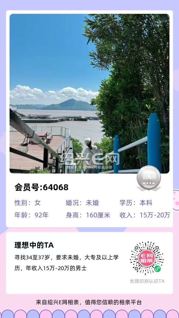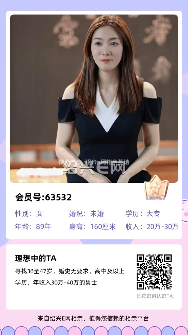 89年未婚,身高160,本人娟娟见过,肤白貌美气质佳,谈吐大方容易亲近。