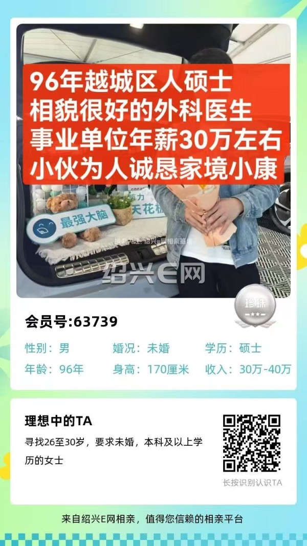 39岁以下,未婚,身高173+,大专以上,外貌顺眼,房车俱备的绍兴本地男生
