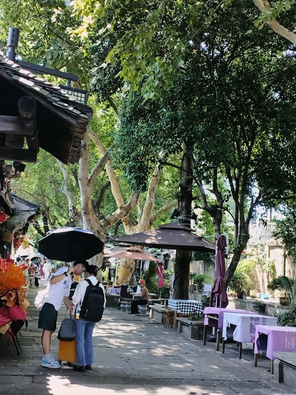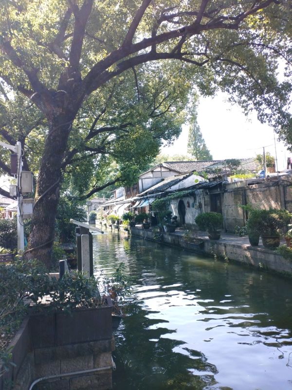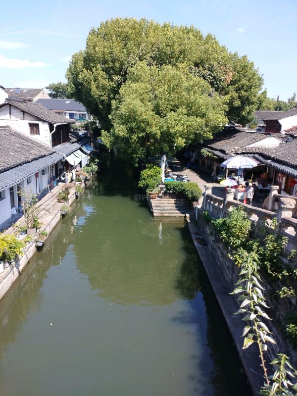 从广宁桥起步的南首区域,茂密的古树苍劲翠蔓,其遮阳的效果特别好。目光扫过河道两岸古韵盎然的民居,在阳光的照射下更见那斑驳的老墙,为这片古韵盎然的水乡天地,增添了一抹明媚风姿,同时也见证了多少年来的风雨沧桑。望着眼前这古朴的石桥,河水静静地流淌,几棵大树在风中轻轻地摇曳,仿佛在诉说着岁月的往事。这碧翠烟波,朦胧诗意,宛如一幅水墨丹青;柔美雅致,嫣紫嫣红,让人意念遐思无限,这景象仿佛蒙上了一层淡雅的薄纱令人陶醉。