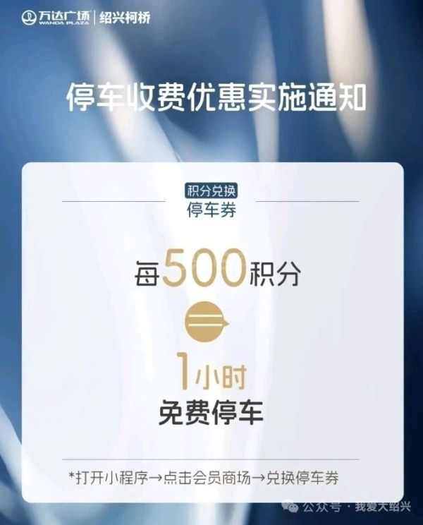 柯桥万达最新实行的停车优惠措施为积分兑换停车券每500积分可以免费停车一小时柯桥万达的商场积分根据不同业态有相应的比例例如:餐饮是消费5元一个积分服饰、零售等是消费1元一个积分!
