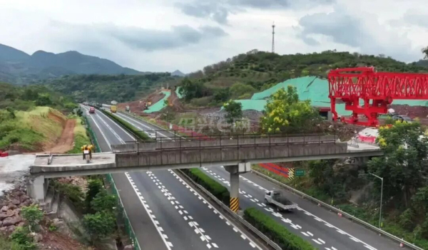 项目团队因地制宜采用“架桥机拼装拆除”工艺,将天桥分段搬离营运高速,为后续四车道扩建八车道打开工作面。