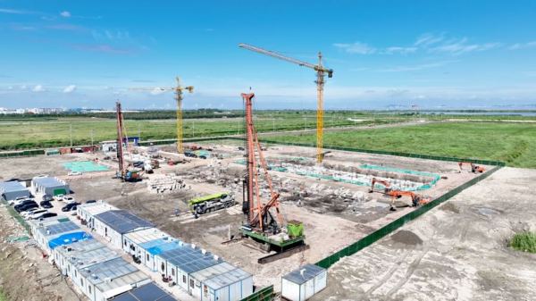 这片土地上的变化堪称“日新月异”,几个月前还是一片空地,如今已是塔吊旋转、建筑拔地而起。目前,最早动工的甲类、丙类仓库已结构封顶,综合楼、总控室等也拔地而出,开始上部结构施工。