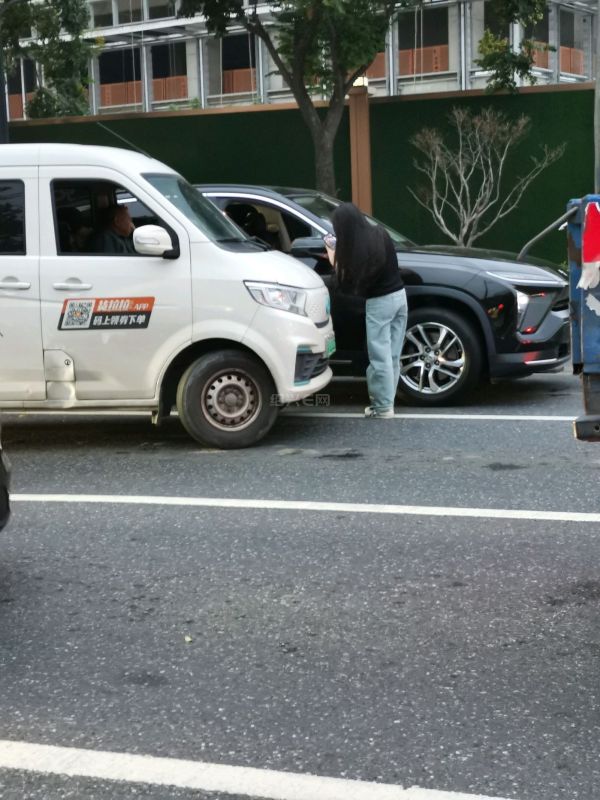 今天下午17点半,一辆白色面包车斗气,别住黑色电车,骂骂咧咧,女司机下车查看后开走