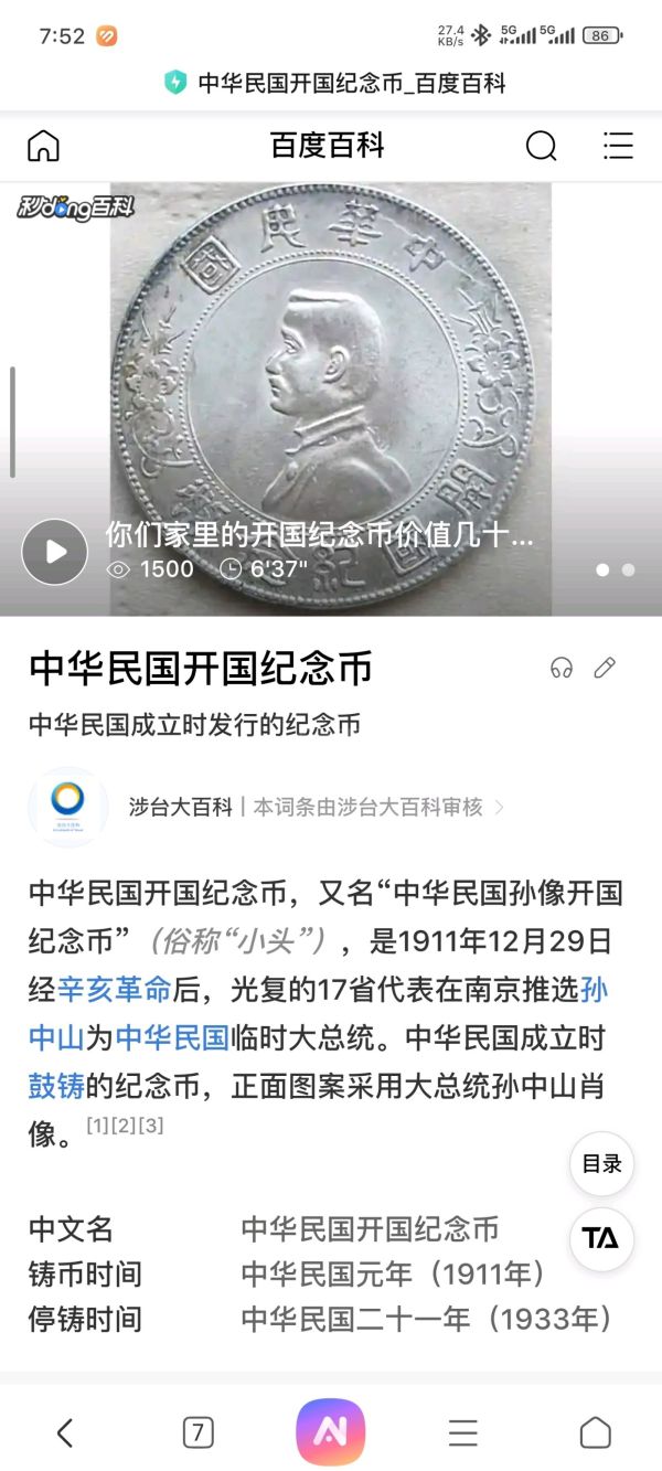 回 12楼(动动手指) 的帖子 动动手指:真假不知道,但是百度了下这个是民国开国纪念币,是小头币,孙中山先生的头像。我们一般熟知的是袁大头。(2025-10-23 07:54)