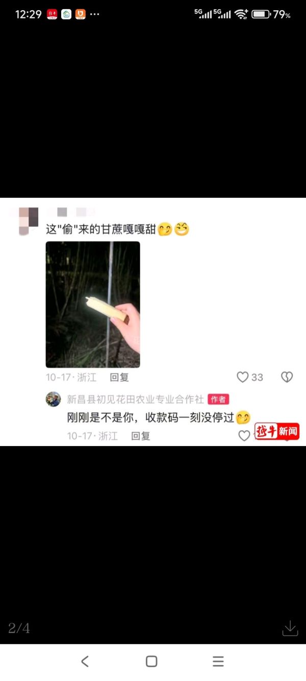 目前,王勇龙的甘蔗地已经基本空了,2000根按传统方式的售出,1000根被网友“偷”走,“本来只是想跟网友一起玩‘梗’,没想到火了。我们的甘蔗不算便宜,但脆甜品质过硬,这波流量引进来,名声算是打响了。”这两天陆续还有不少网友想要来,王勇龙只能婉拒,“边上的邻居也种了一些,我们去沟通,看他愿不愿意让我们的粉丝来砍。”