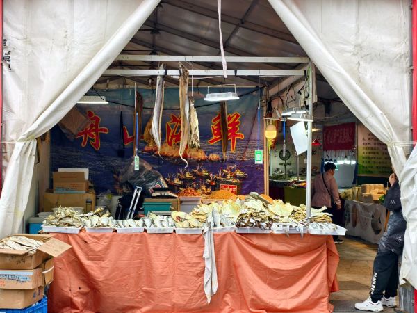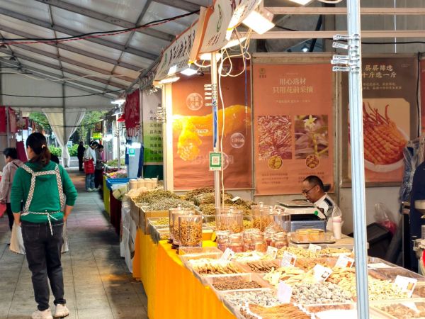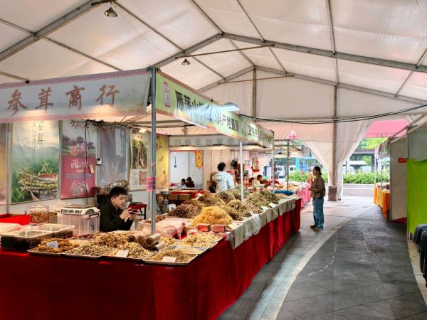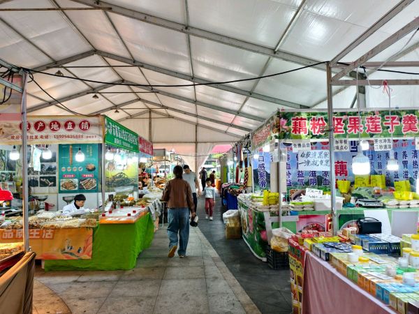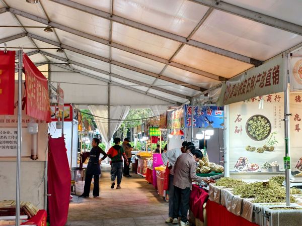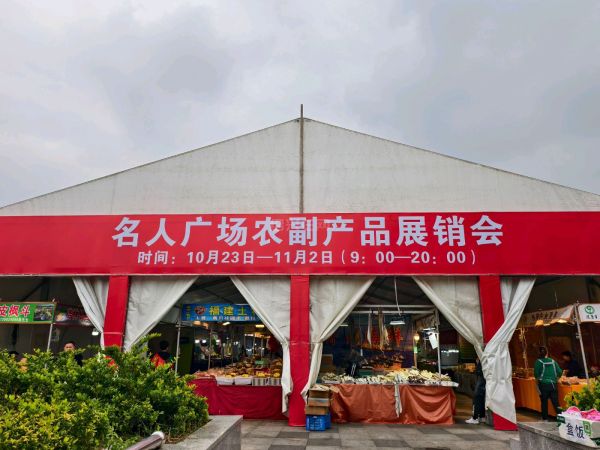 名人广场农产品展销会现场冷冷清清,摊位前少有市民驻足咨询,昔日热闹的展会如今备受冷落。