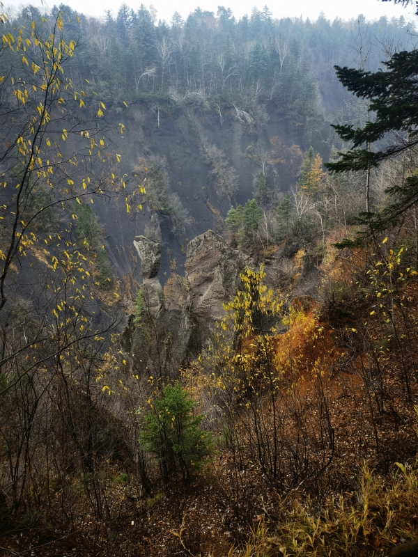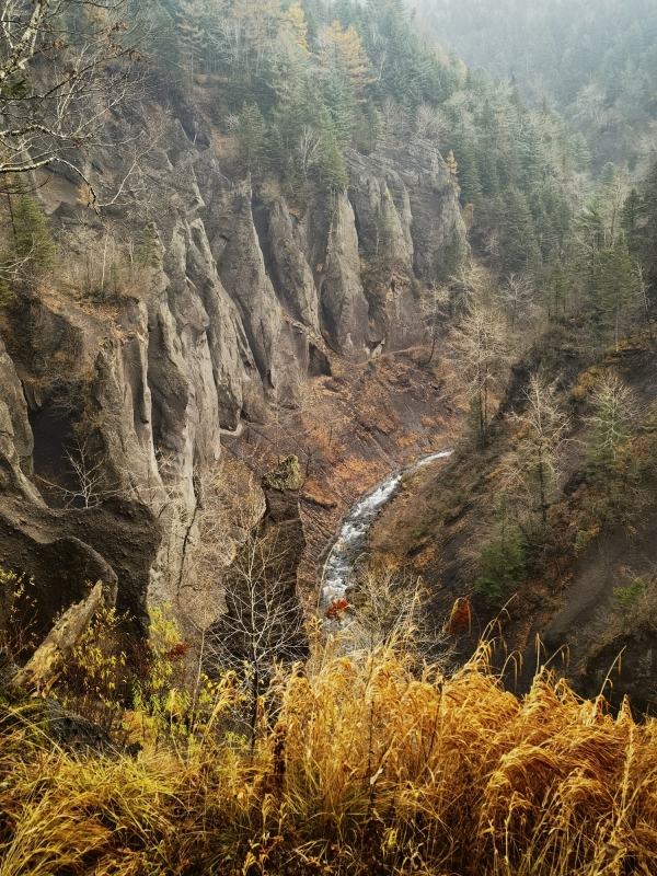 长白山天池西坡南坡封道,只能漫步锦江大峡谷。锦江大峡谷位于吉林省白山市抚松县长白山火山西坡北锦江谷地,距天池20多公里。峡谷长达70公里,最宽处约300米,垂直深达160米,呈“人”字形,由南锦江峡谷和北锦江峡谷最后汇成一条峡谷。它是由火山堆积经千年的断裂构造作用和流水侵蚀切割而形成的,谷底有一条溪流,谷坡约70-80度,部分地方垂直,极难下到谷底。