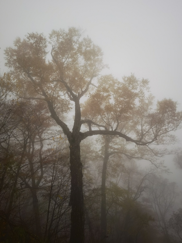 漫天大雾,去不了天池西线,只能走走万达果松山原始森林木栈道。
