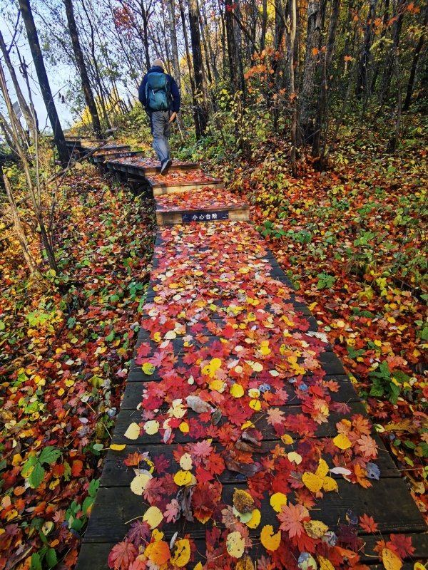 早起,徒步长白山森林木栈道~这才是东北该有的秋色!