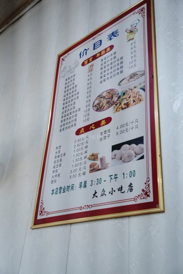老阿姨叔叔们开的店铺,饺子0.6一只也就是吃十只只要6块比市区便宜。带肉丝的面条价格是10元以下,价格侠们满意了吧。