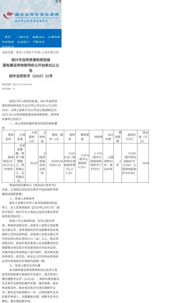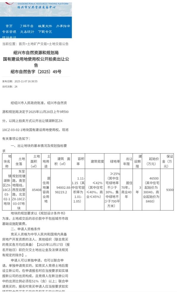 更正一下,4亿出头是三块商业公园用地,加上住宅酒店是8亿多