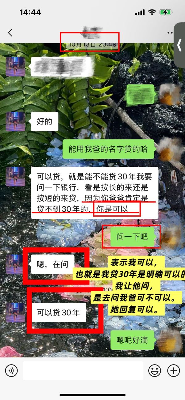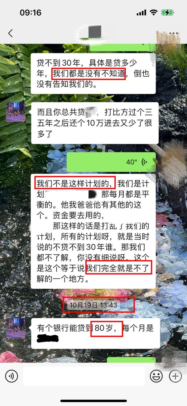 为何只听一面之词,中介,你骗我们的事怎么不说呢?30年贷款是不是你说的,不是你说的,我头给你。做人说话要基于事实,先骗我们贷款可以做到30年,签约到一半告诉我们不到30年,所有人都以为20年,18号逼问下告诉我们10多年,最后又说能贷到80岁,这不是你们说的,太黑了吧?