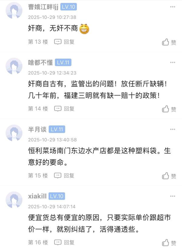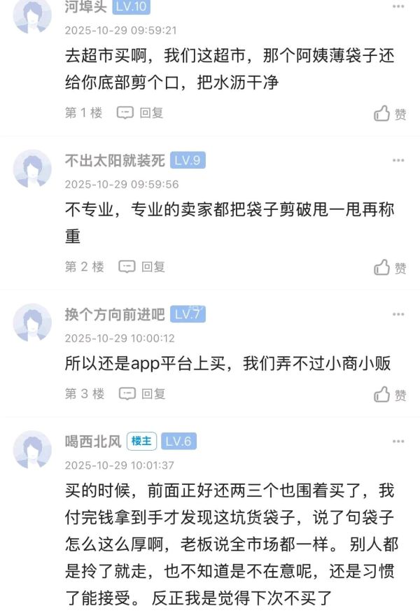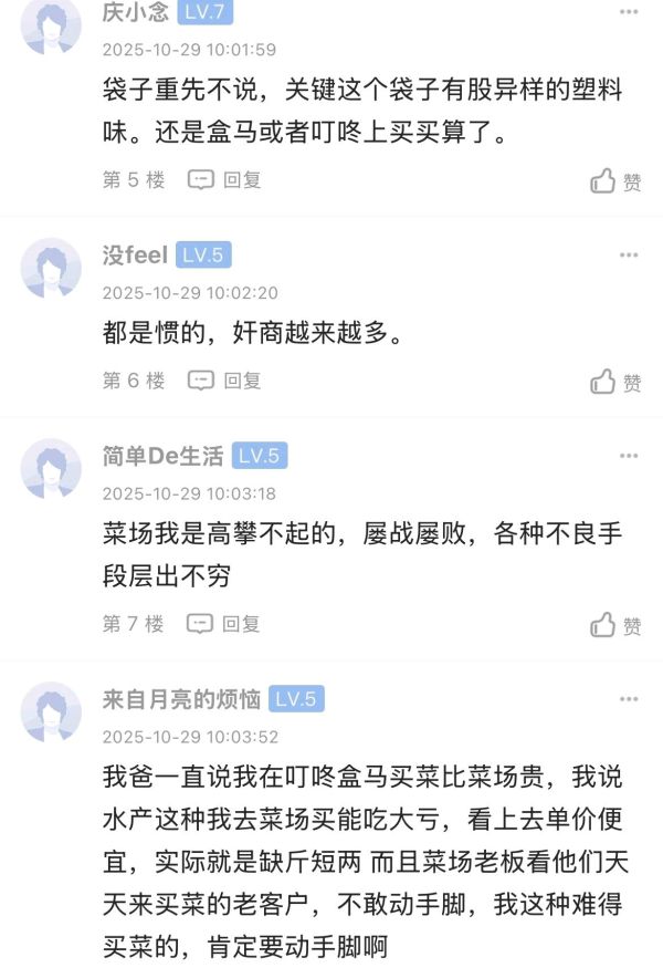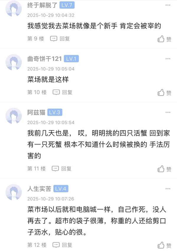 有坛友最近去了趟菜市场后发帖吐槽