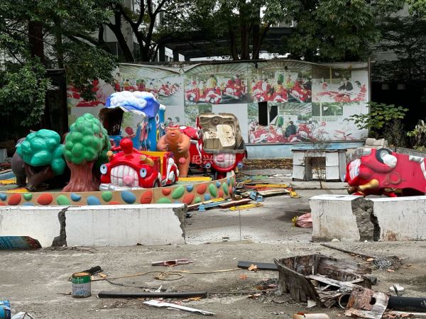 儿童公园,一边在考古(考古前置);另一边落寞破败中在等待改造——改造前的儿童公园。