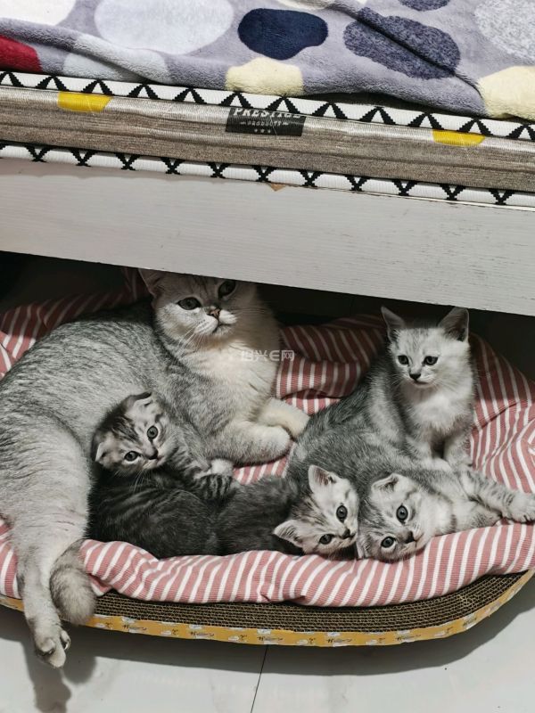 上个月22号凌晨被弃养大着肚子的银渐层自己跑进我家生了4只小公猫,猫爸爸应该是狸花猫。现等小猫彻底断奶后可领养。希望领养人是爱猫的,能对猫猫好的!