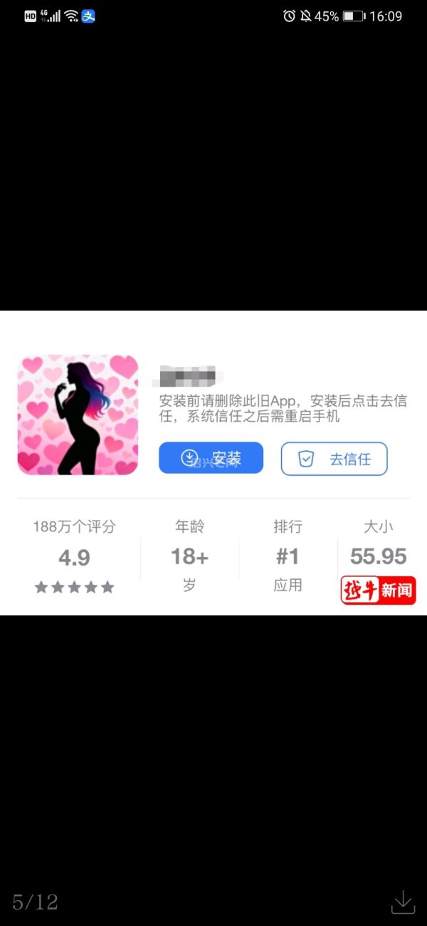 该APP名称为一串无意义乱码,图标为女性剪影,设计风格暧昧隐晦。值得注意的是,该软件无法通过正规应用商店下载,仅能通过广告链接获取。