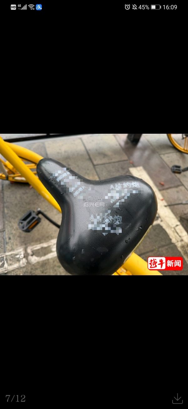 近日,记者在绍兴多地随机走访发现,在居民区、交通枢纽、商业综合体等共享单车聚集点,车座上印有不良广告的现象颇为常见。