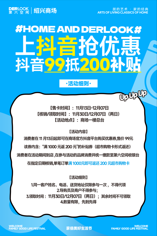 报名用户享受:第六空间200元家电补贴(抖音预交99元领200超市卡)+叠加第六空间下单抽奖和满额大礼!