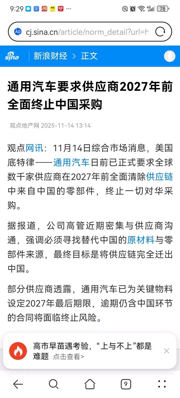 都是对等的,通用不采购中国原材料,也只能退出中国市场,现在市场在哪里?