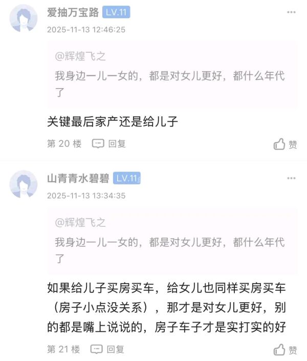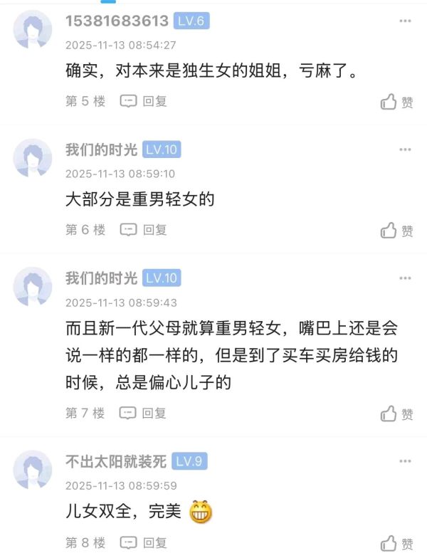 回 第1楼(tl94328)的帖子 tl94328:到现在还在重男轻女的真是老顽固了 (2025-11-16 06:56)